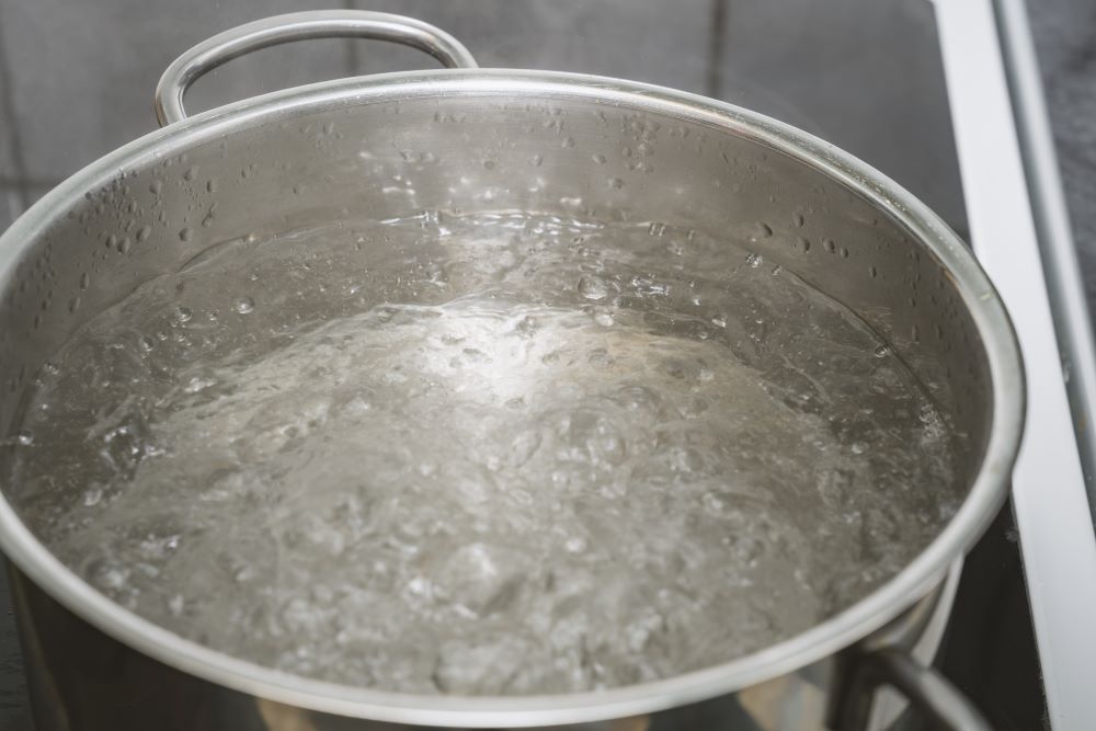 - 鍋を火にかけて、沸騰したらバスタオルを入れる